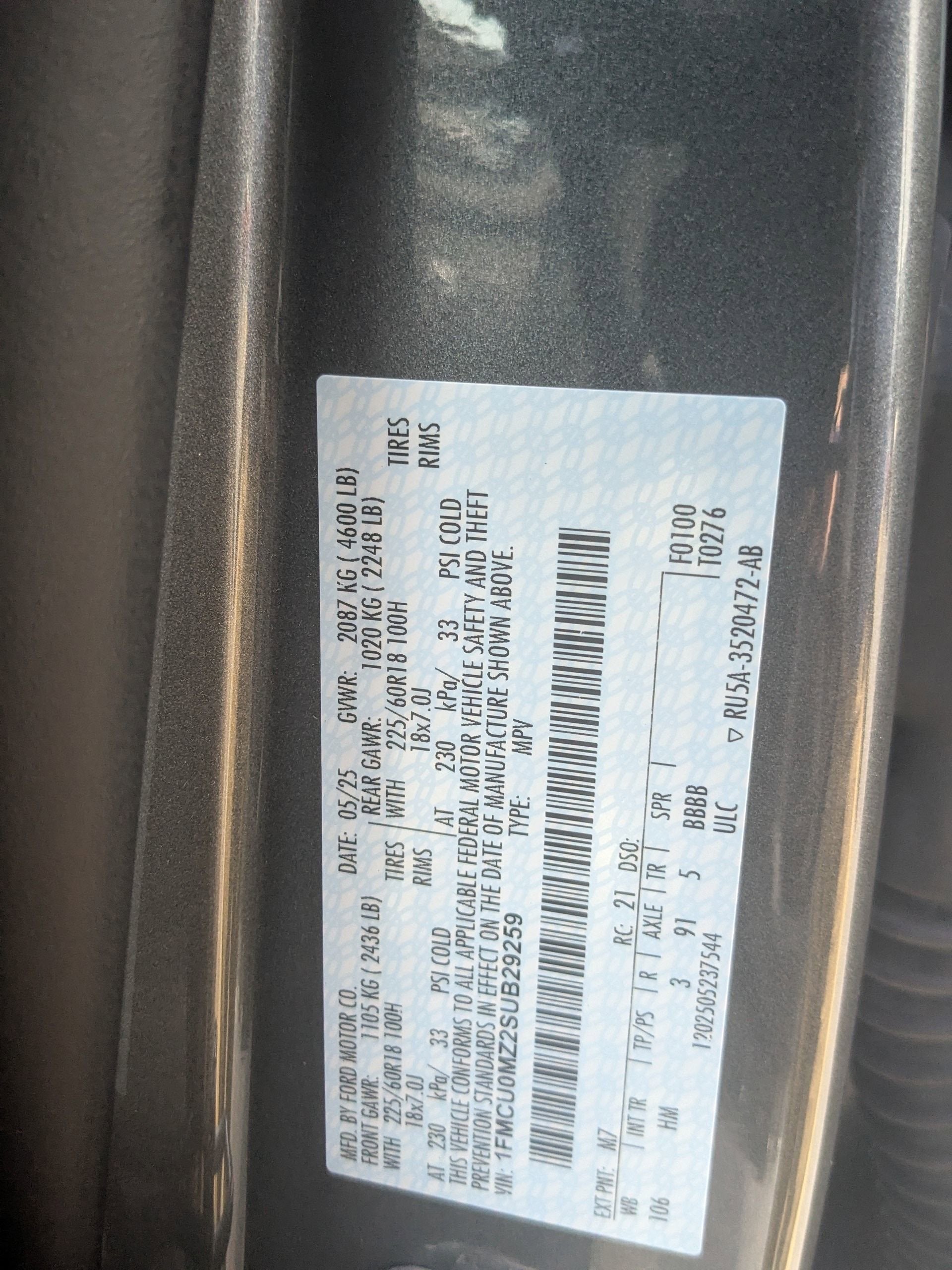 - Vehicle Name: Ford Escape