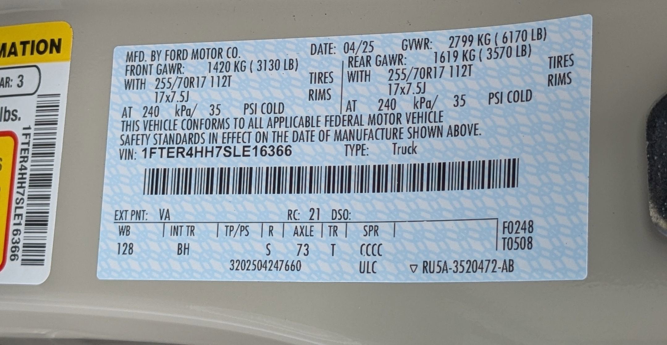 - Gross Axle Wt Rating - Front (lbs): 3130