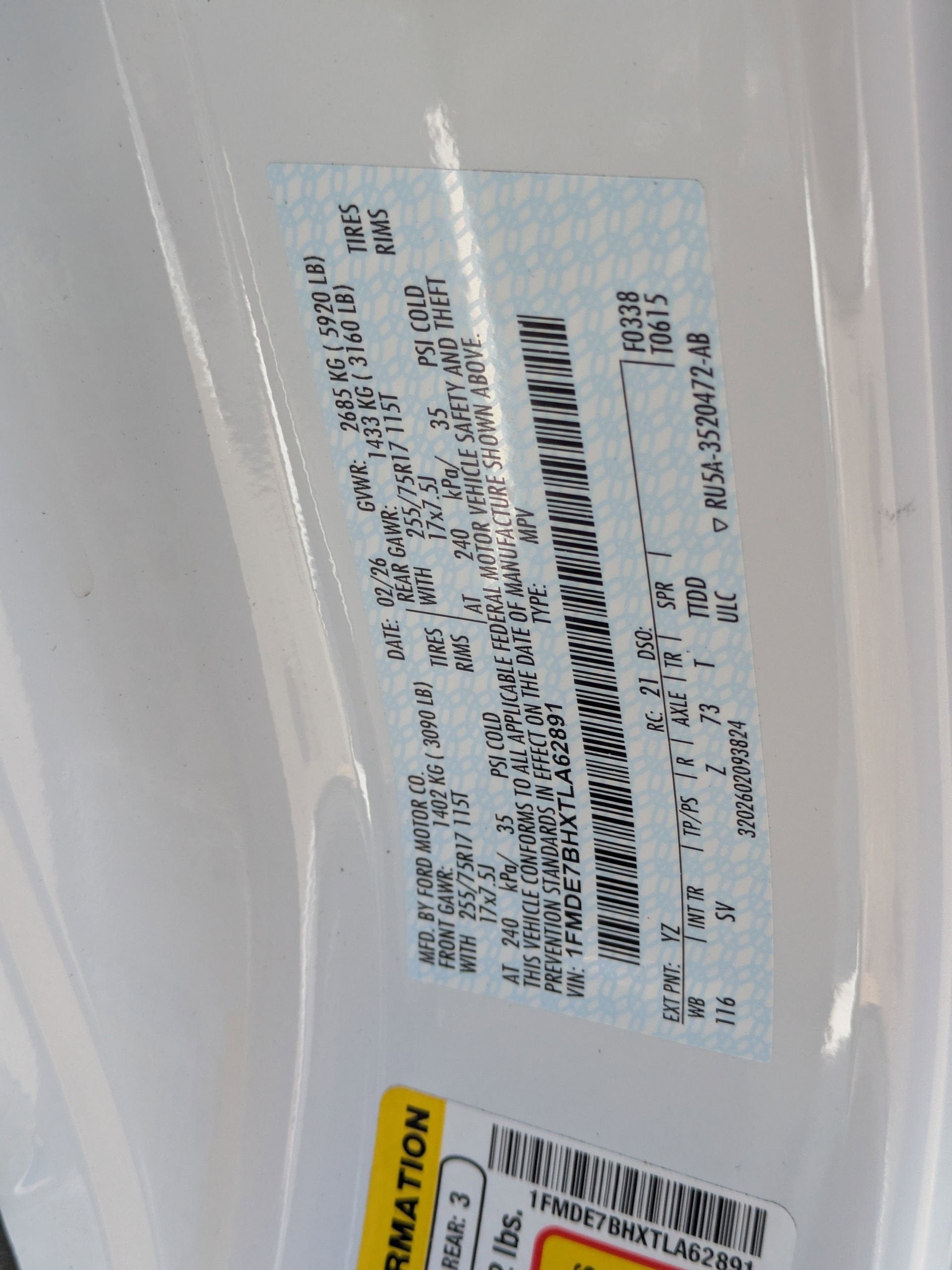 - Gross Vehicle Weight Rating Cap (lbs): 5920
