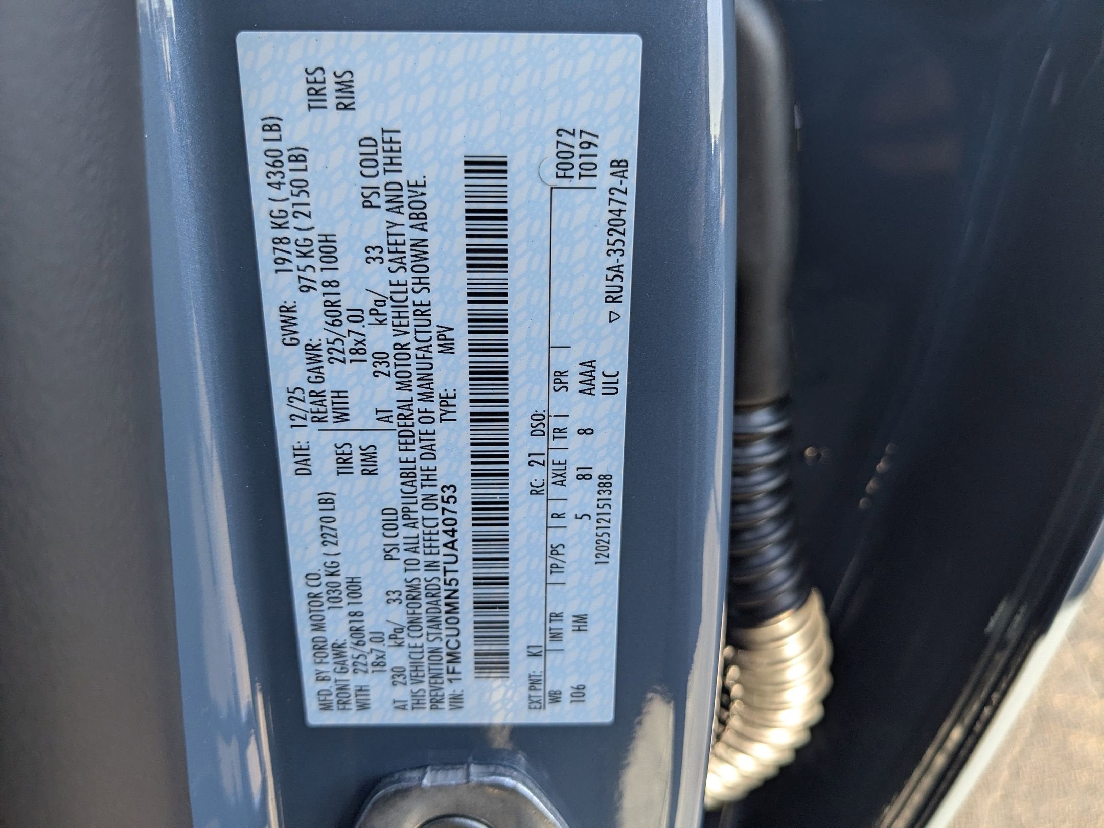 - Vehicle Name: Ford Escape