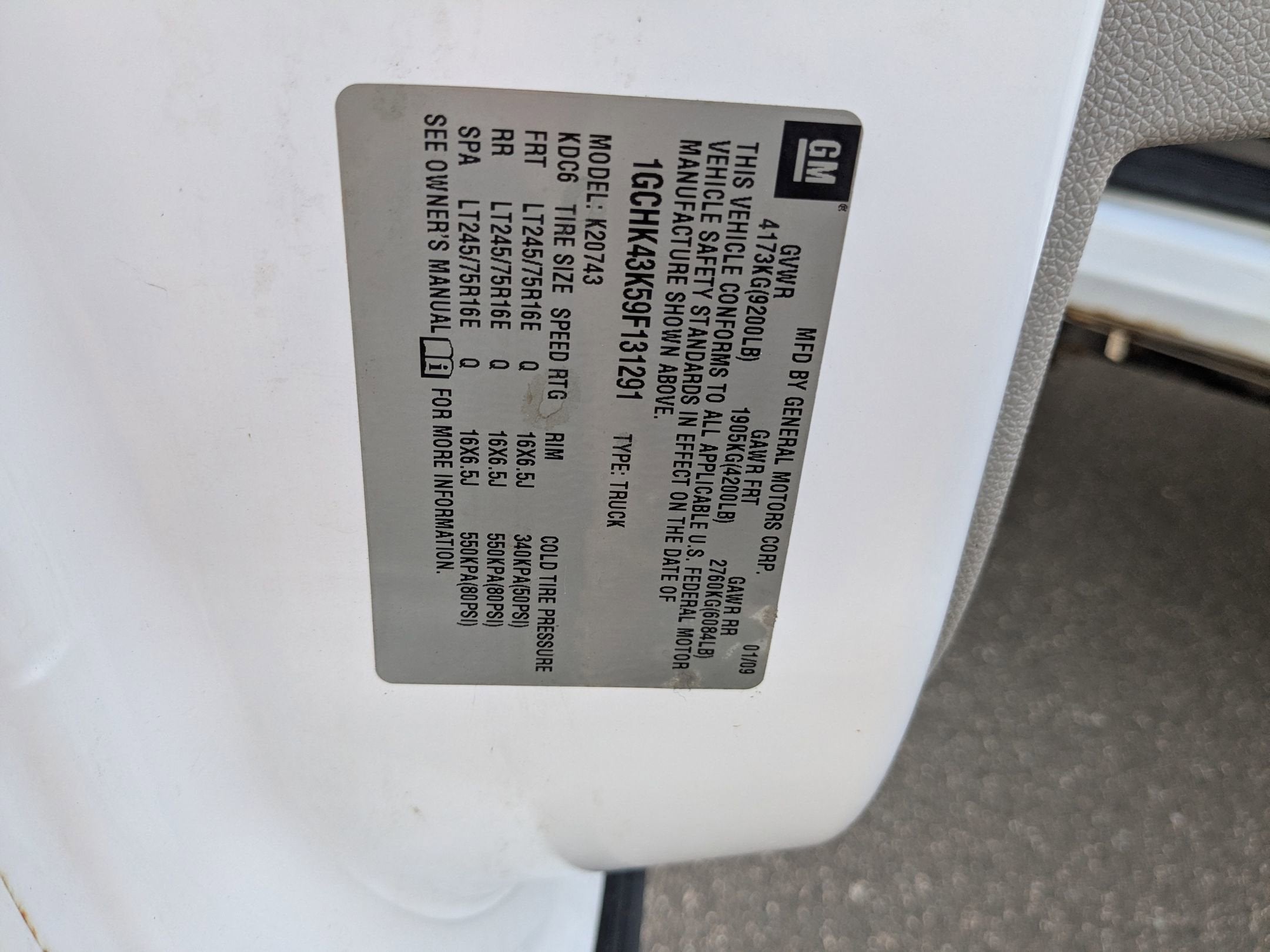 1GCHK43K59F131291