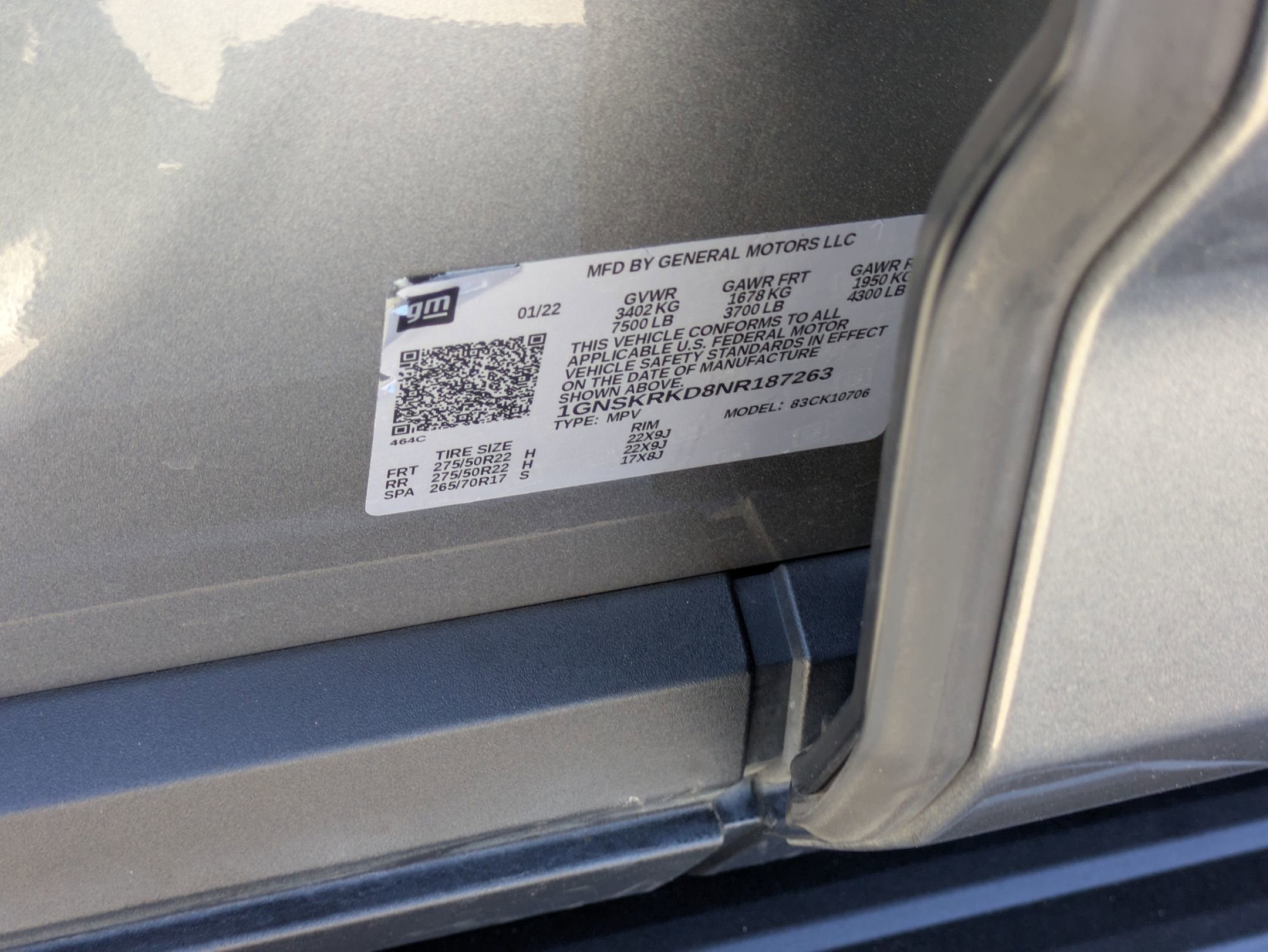 - Tires, 275/50R22SL all-season, blackwall