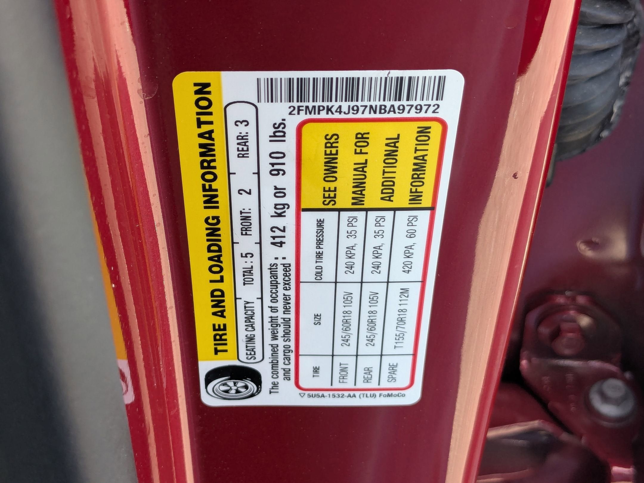 - Front Tire Size: P245/60HR18