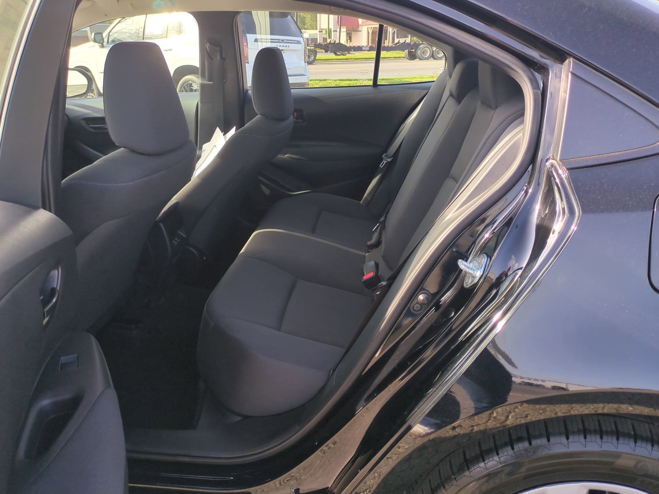 Midnight Black 2023 Toyota Corolla LE 4-Wheel Disc Brakes, 6 Speakers, ABS brakes, Air Conditioning, AM/FM radio: SiriusXM, Auto High-beam Headlights, Automatic temperature control, Brake assist, Bumpers: body-color, Delay-off headlights, Driver door bin, Driver vanity mirror, Dual front impact airbags, Dual front side impact airbags, Electronic Stability Control, Emergency communication system: Safety Connect (up to 10-year trial subscription), Exterior Parking Camera Rear, Front anti-roll bar, Front Bucket Seats, Front Center Armrest, Front reading lights, Front wheel independent suspension, Fully automatic headlights, Illuminated entry, Knee airbag, Low tire pressure warning, Occupant sensing airbag, Outside temperature display, Overhead airbag, Panic alarm, Passenger door bin, Passenger vanity mirror, Power door mirrors, Power steering, Power windows, Premium Fabric Seat Trim, Radio data system, Radio: 8" Toyota Audio Multimedia, Rear anti-roll bar, Rear seat center armrest, Rear side impact airbag, Rear window defroster, Remote keyless entry, Speed control, Split folding rear seat, Steering wheel mounted audio controls, Tachometer, Telescoping steering wheel, Tilt steering wheel, Traction control, Trip computer, Variably intermittent wipers, Wheels: 16" Wide Vent Steel. LE